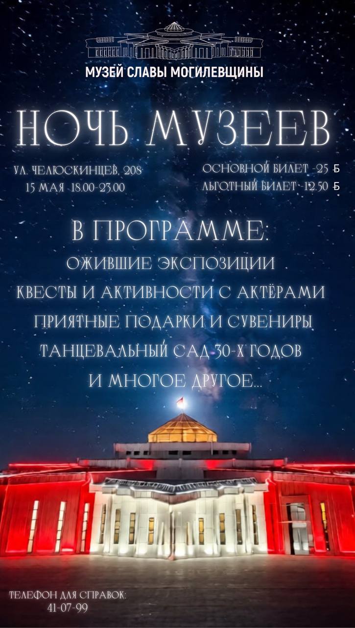 «Ночь музеев» в Музее Славы Могилевщины Где? ул. Челюскинцев, 208 Когда? 15 мая, с 18:00 до[…]